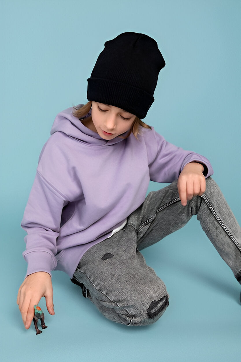 A stylish and comfortable light purple hoodie for boys. Perfect for casual wear, playtime, or layering.